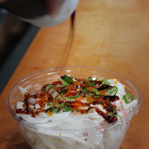 Start with a base of sushi rice, top with your favorite proteins and fillings, then finish with your choice of sauces and toppings.
